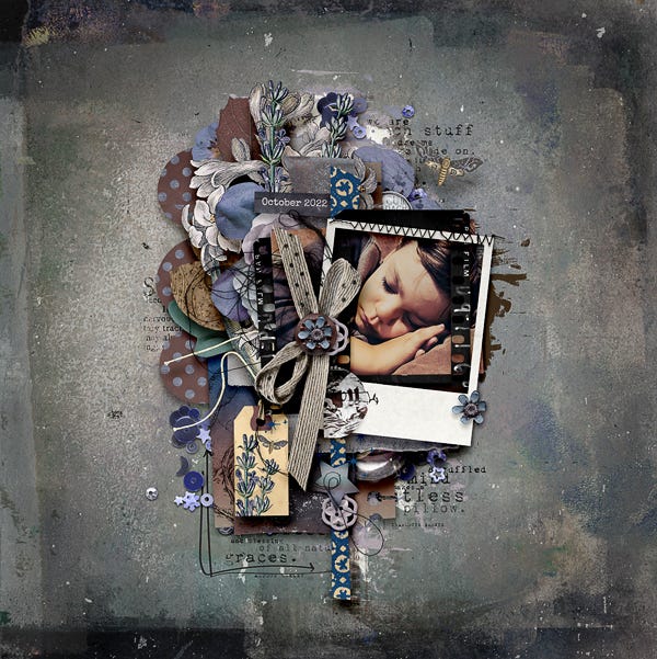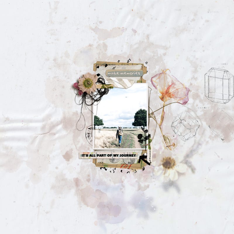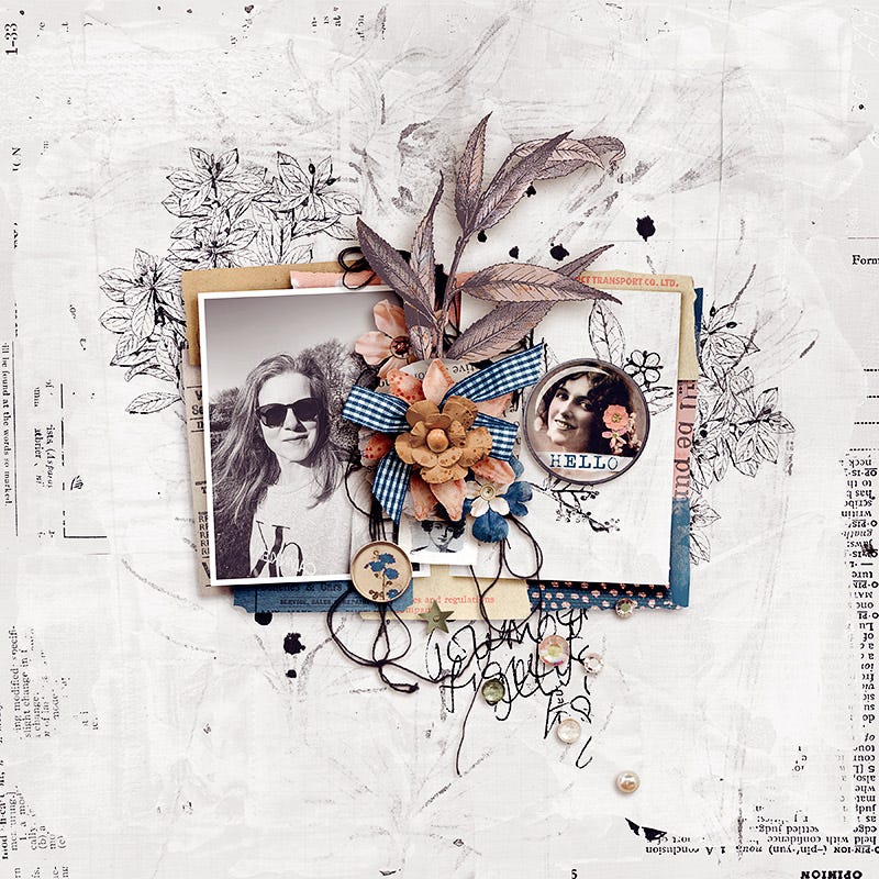 So what is a smart way of using Digital Scrapbooking Stamps and paint to give a Scrapbook Page a Mixed Media Twist and what is it that makes a good ephemera cluster?