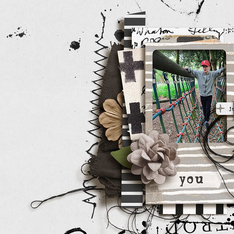 Consider your colours and ensure they compliment or just add some needed contrast to your photograph or the main focal point to your page. Neutral or monochrome colours are a good starting point. Again, consider using a variety of different types of ephemera to add texture and interest.