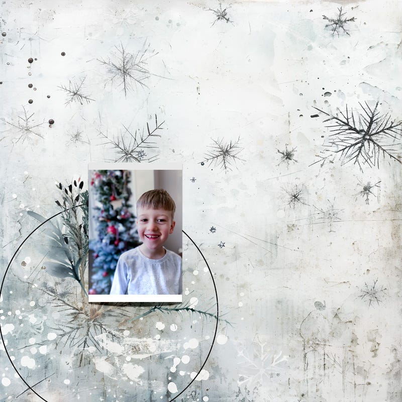 A paint splatter, some shiny confetti and some mixed confetti beads along with a tag and a star were added from my Sweet December Stories Mixed Media Artistry XL pack.