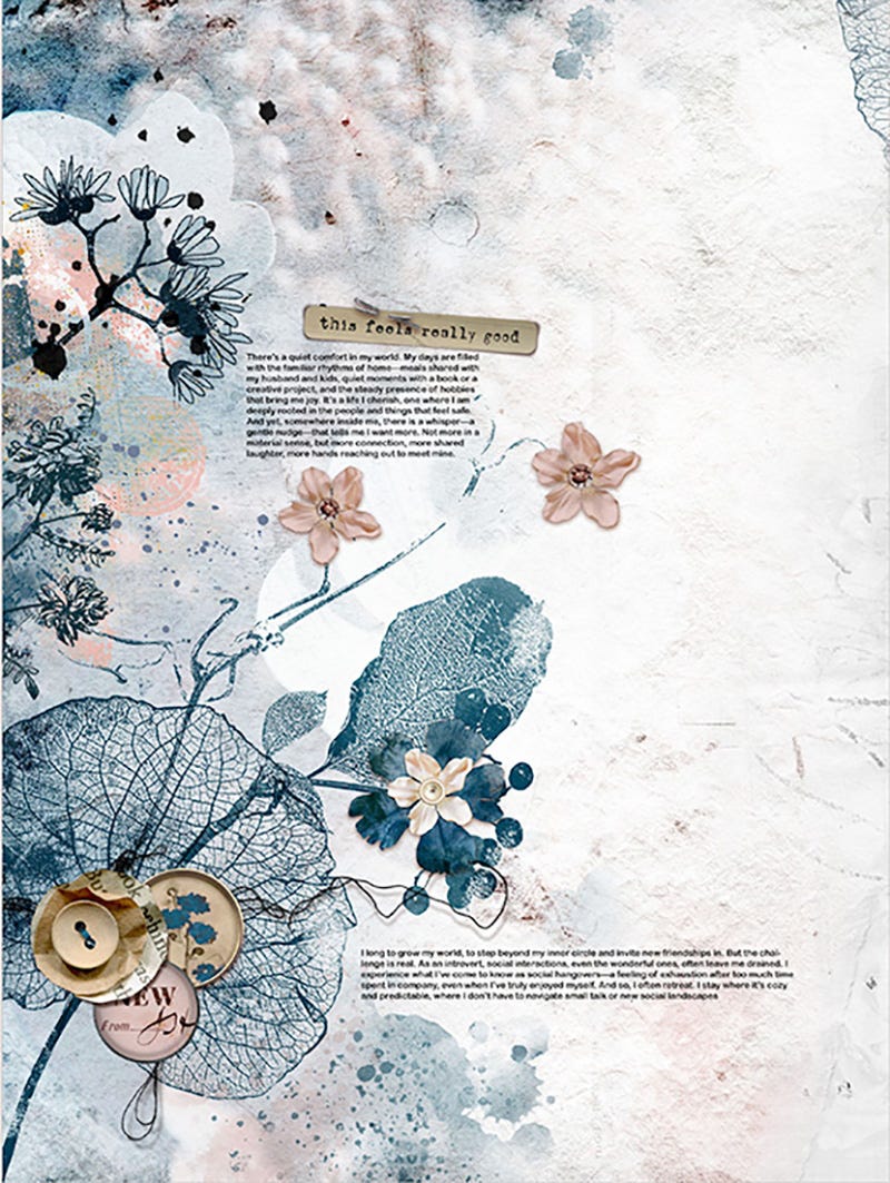 With digital software such as Adobe Photoshop, the ability to layer, blend, and experiment makes creating digital art journaling pages incredibly exciting.