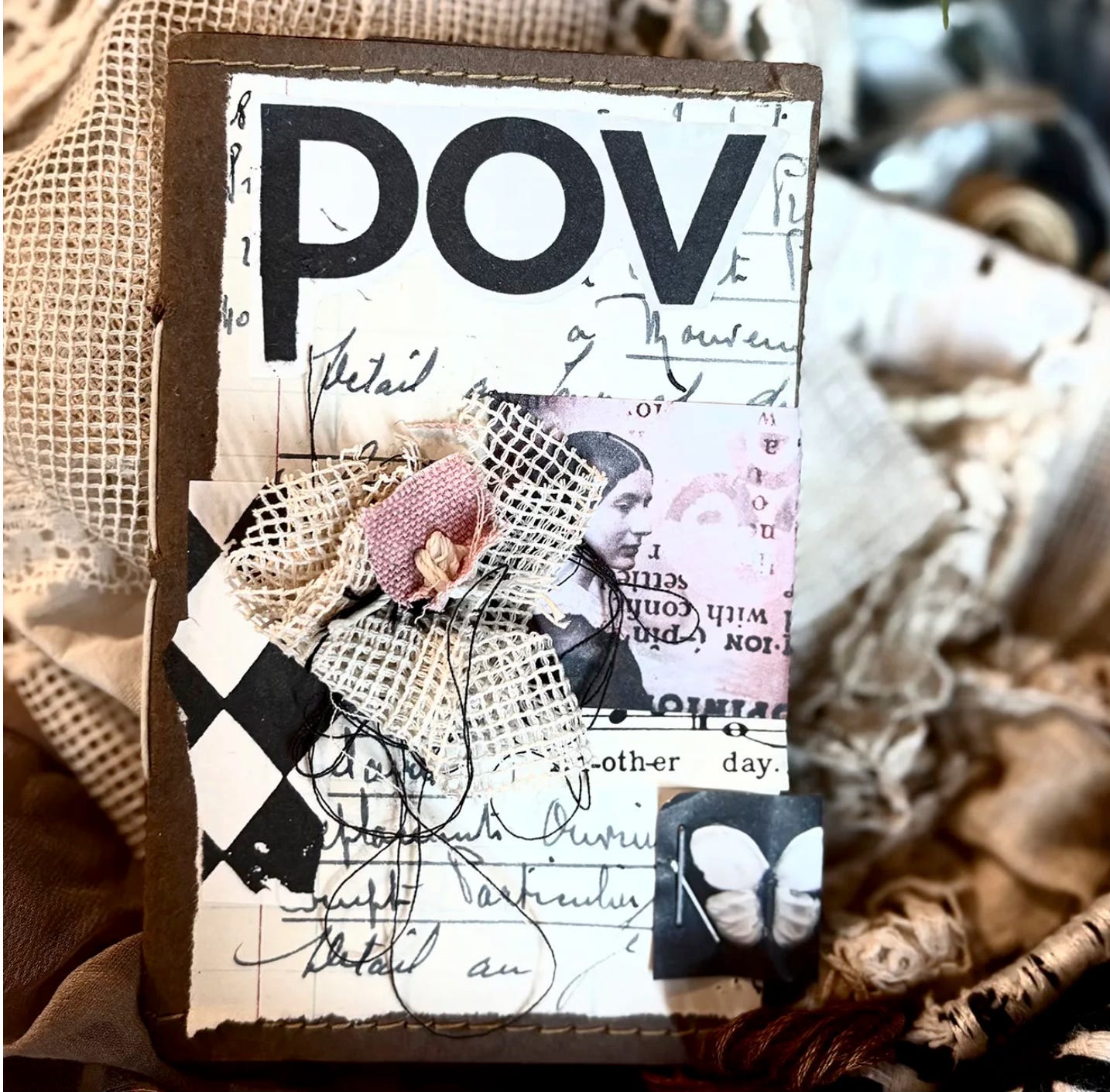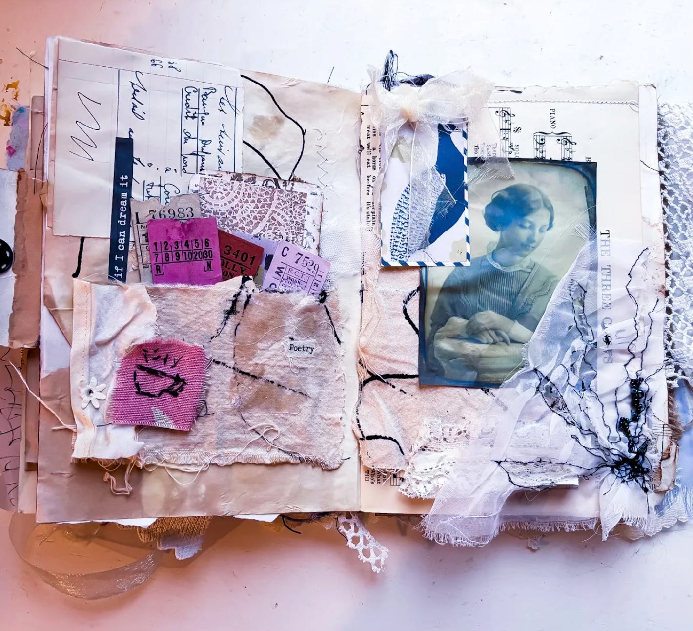 Meanwhile, Rachel found some moments of calm playing with stitching and fabric scraps plus printed elements from the Yearn kit: