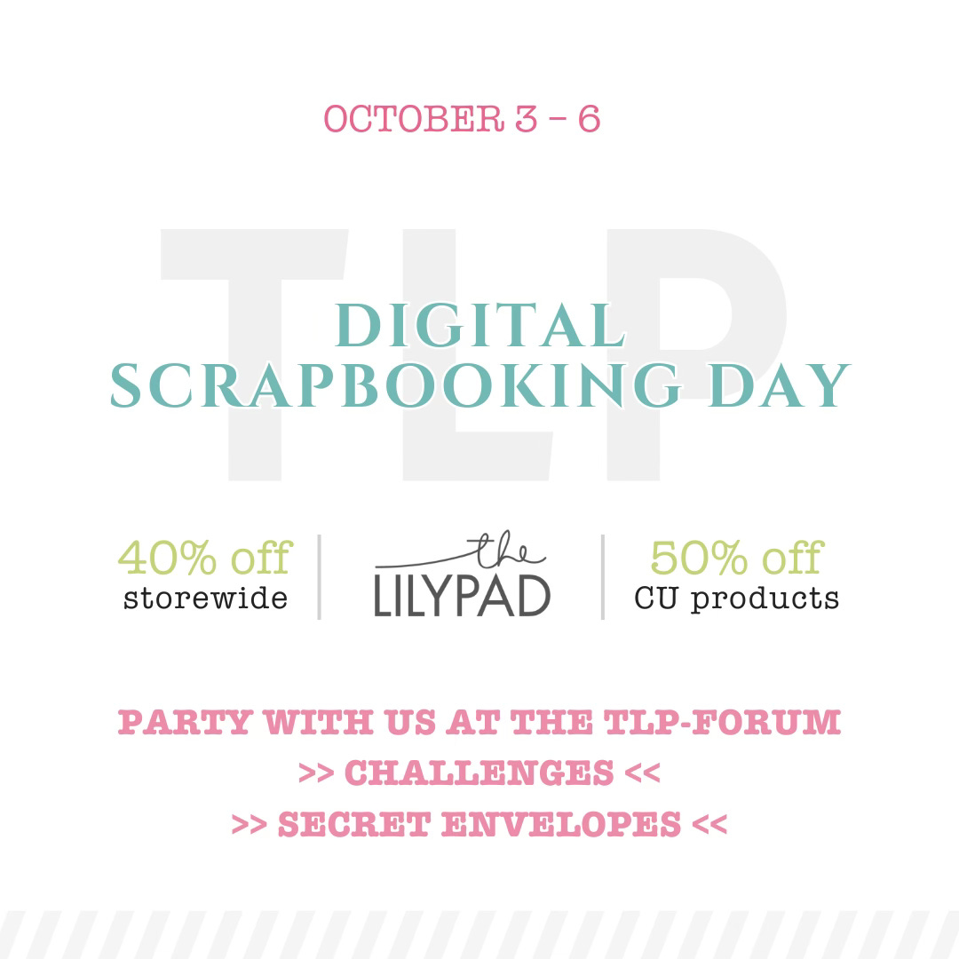 We now each have hundreds of designs in the store at The Lilypad (plus an ‘edit’ at Oscraps). To mark Digital Scrapbooking Day they are all at least 40% off this weekend and through Monday - with even more savings available on bundles or collections.